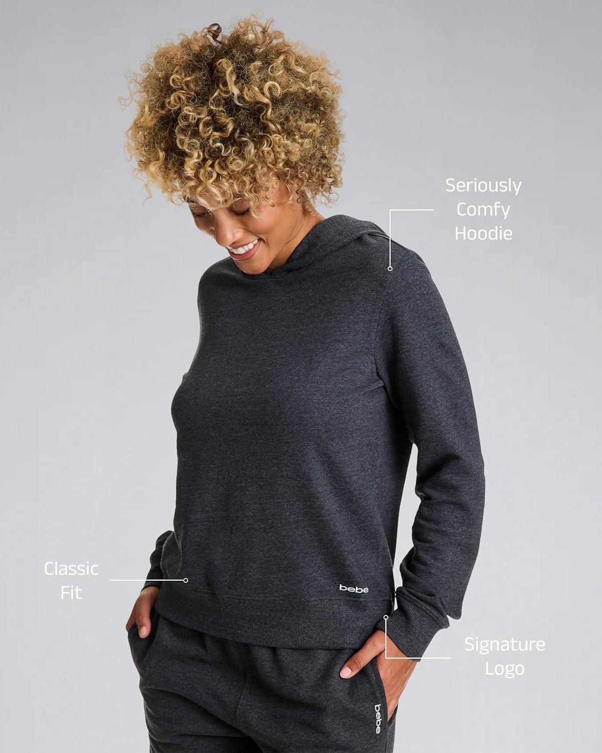 bebe French Terry Hoodies for Women, Pullover Sweatshirts for Women, Comfy and Cute Sweatshirt, Regular and Plus Size(Charcoal Heather W/ Hood)