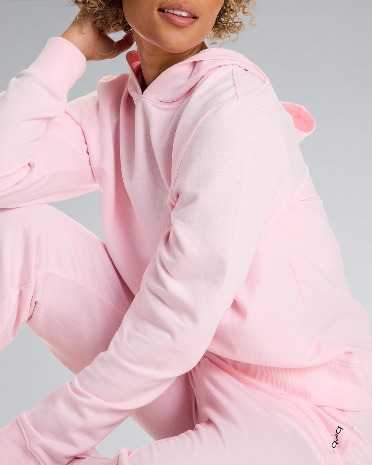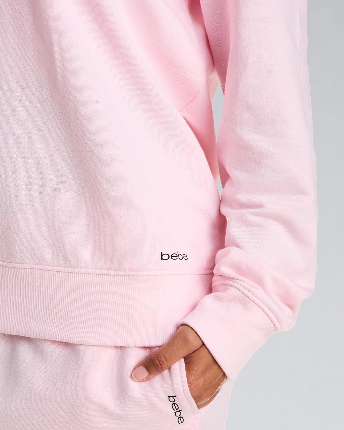 bebe French Terry Hoodies for Women, Pullover Sweatshirts for Women, Comfy and Cute Sweatshirt, Regular and Plus Size(Pink Rose W/ Hood)