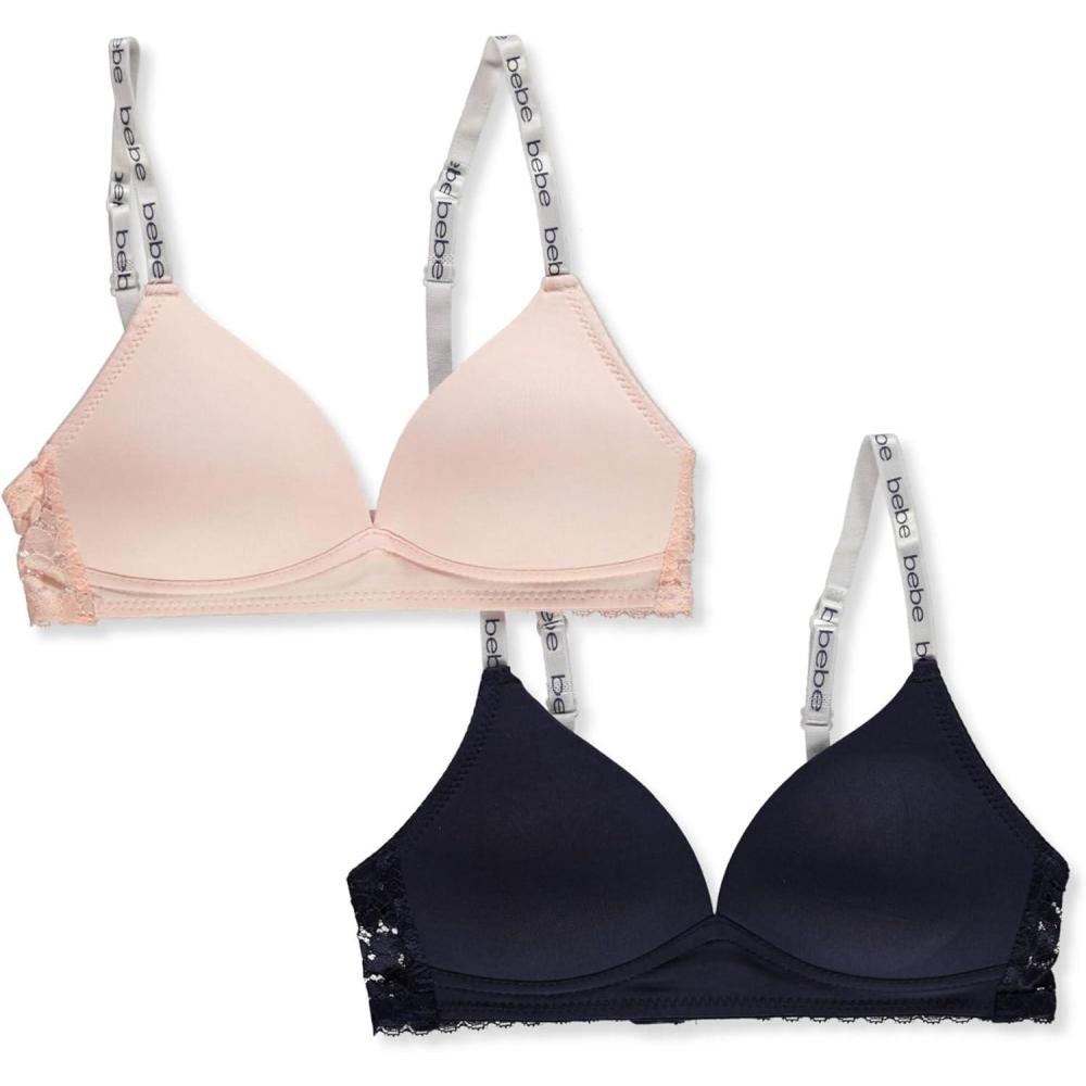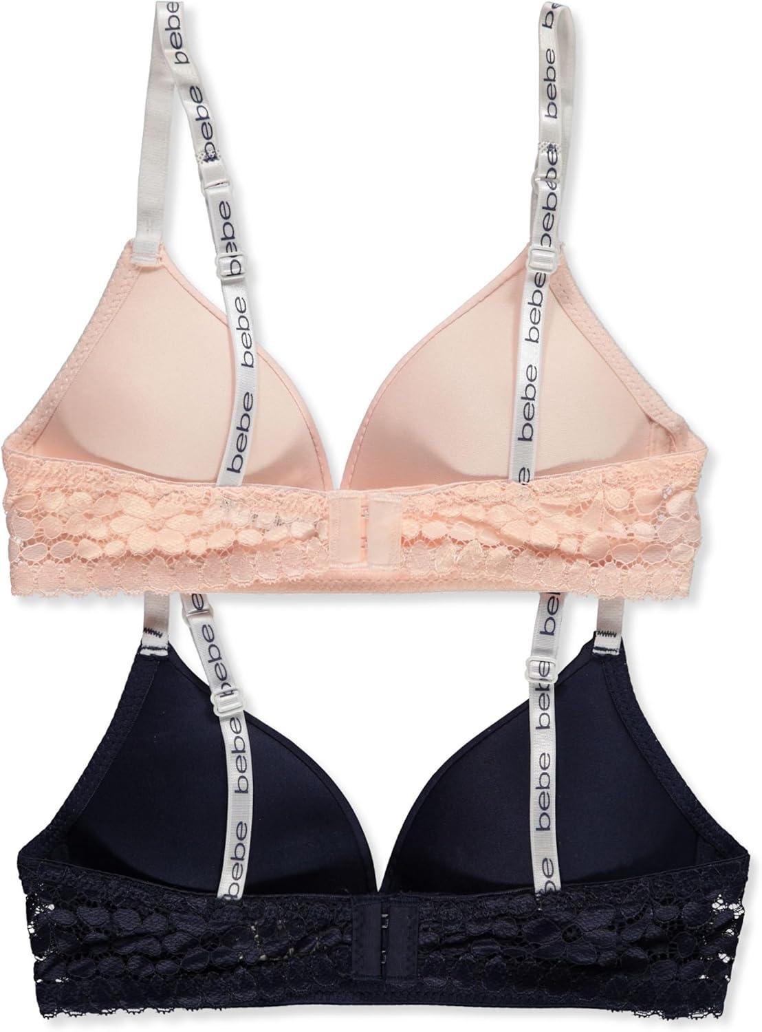 Stock up with this 2-pack from Bebe! Bebe 2-pack bras Polynylon construction Patterns / designs as shown 90% polyester, 10% nylon Made in China