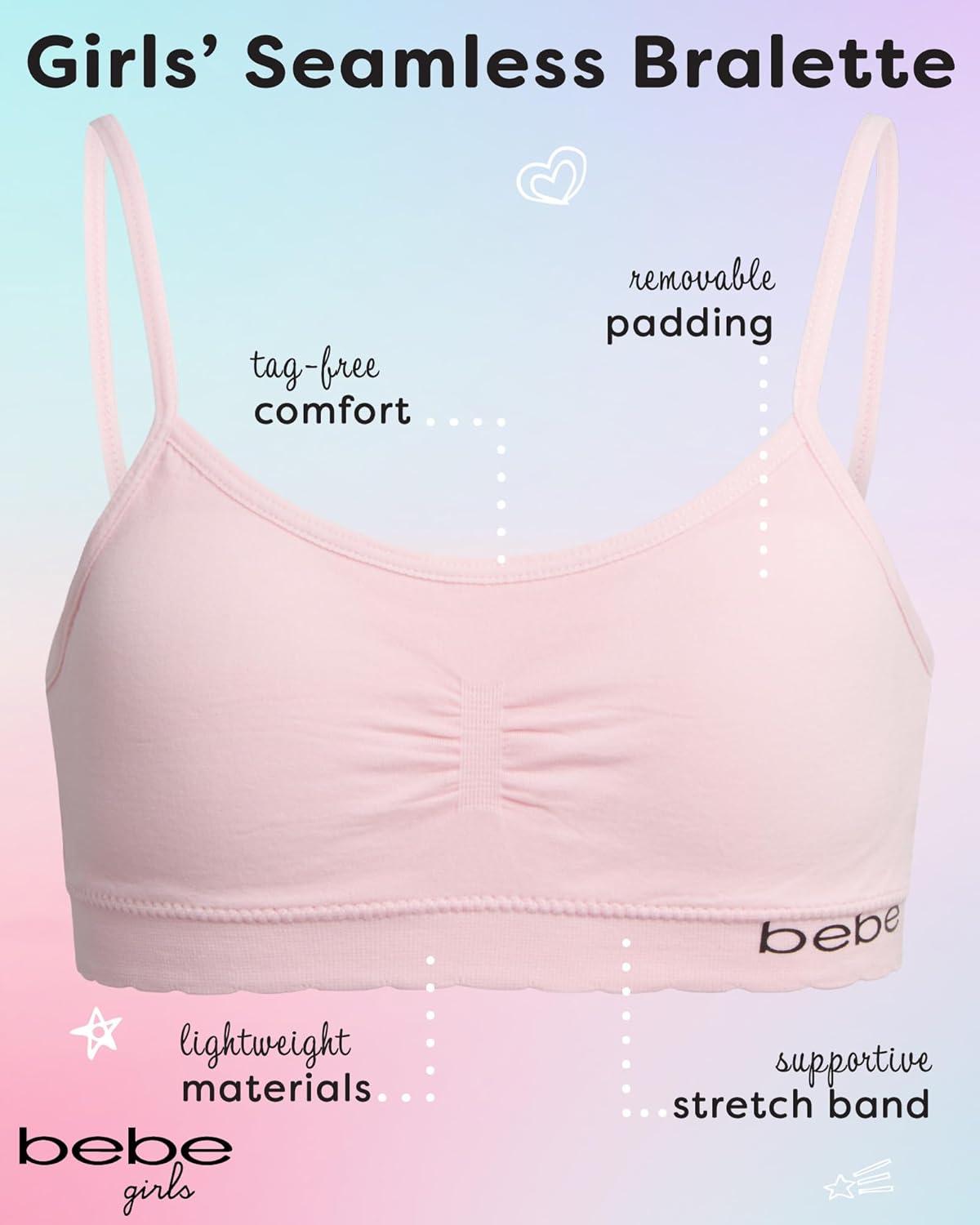 bebe Girls Bras – 6 Pack Lightweight Seamless Training Bra for Girls with Removable Pads Tag Free Bras for Teens (S-L)(Pink Toffee)