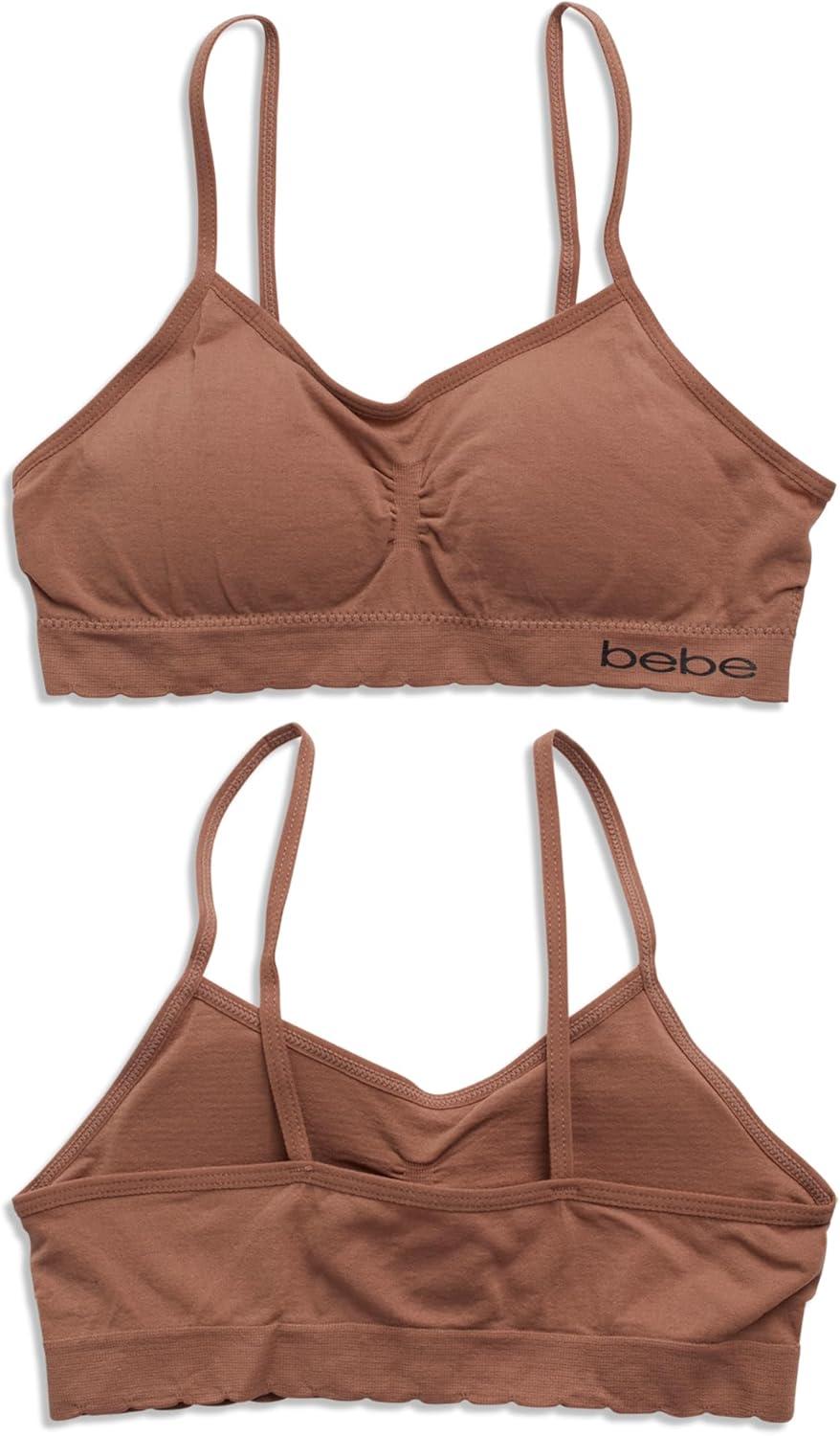 bebe Girls’ 2-Pack Logo Strap Bra – Pink/Multi, 30b