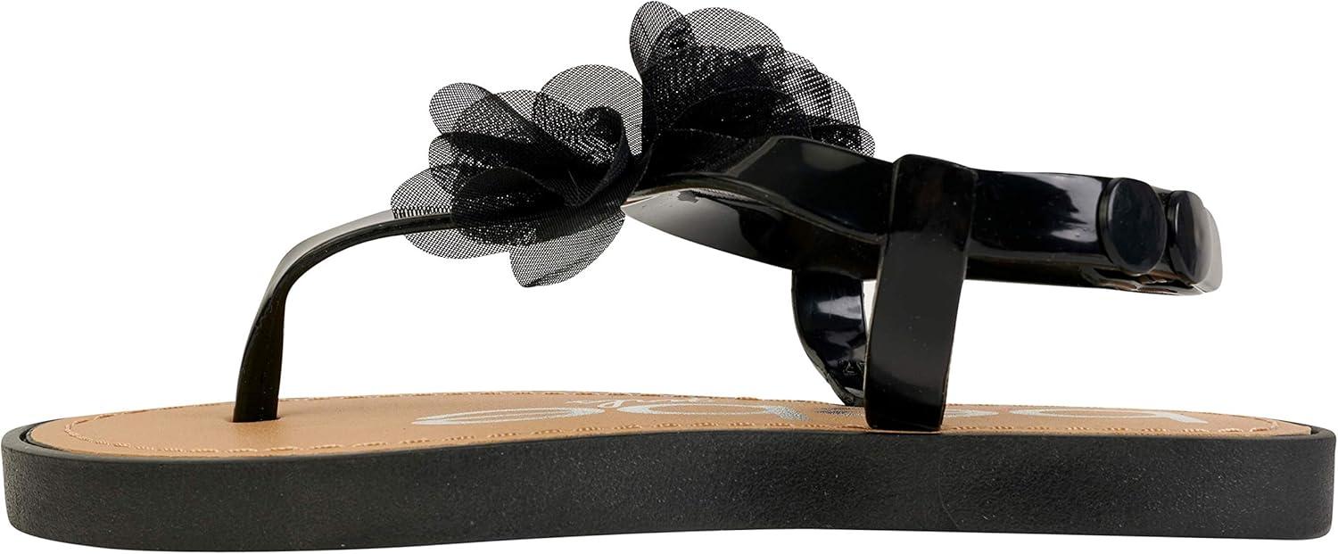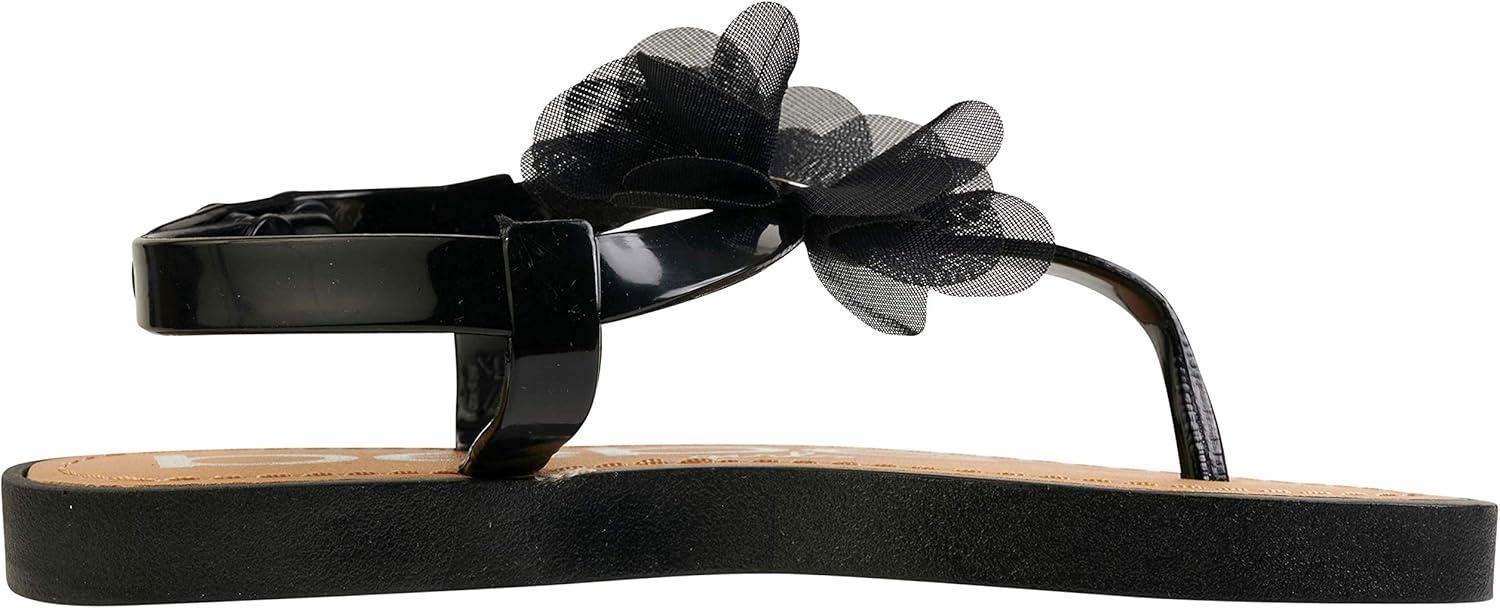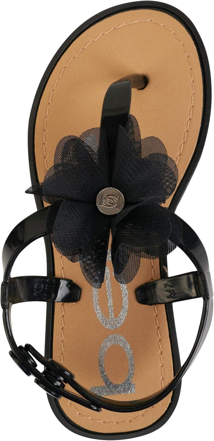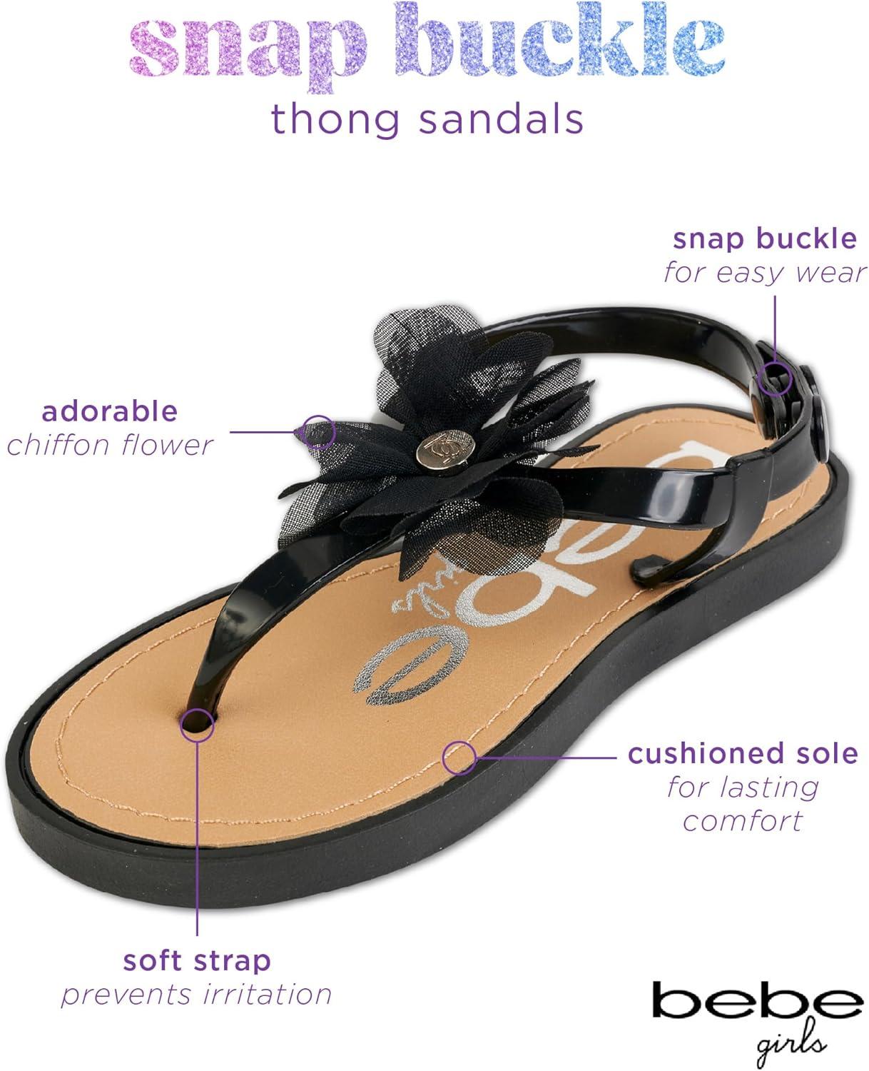 bebe Girls' Sandals - Open Toe Summer Flat Dress Shoes Snap Buckle Sandals with Chiffon Flower Design and Cushioned Sole(Black)