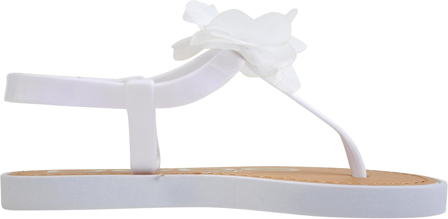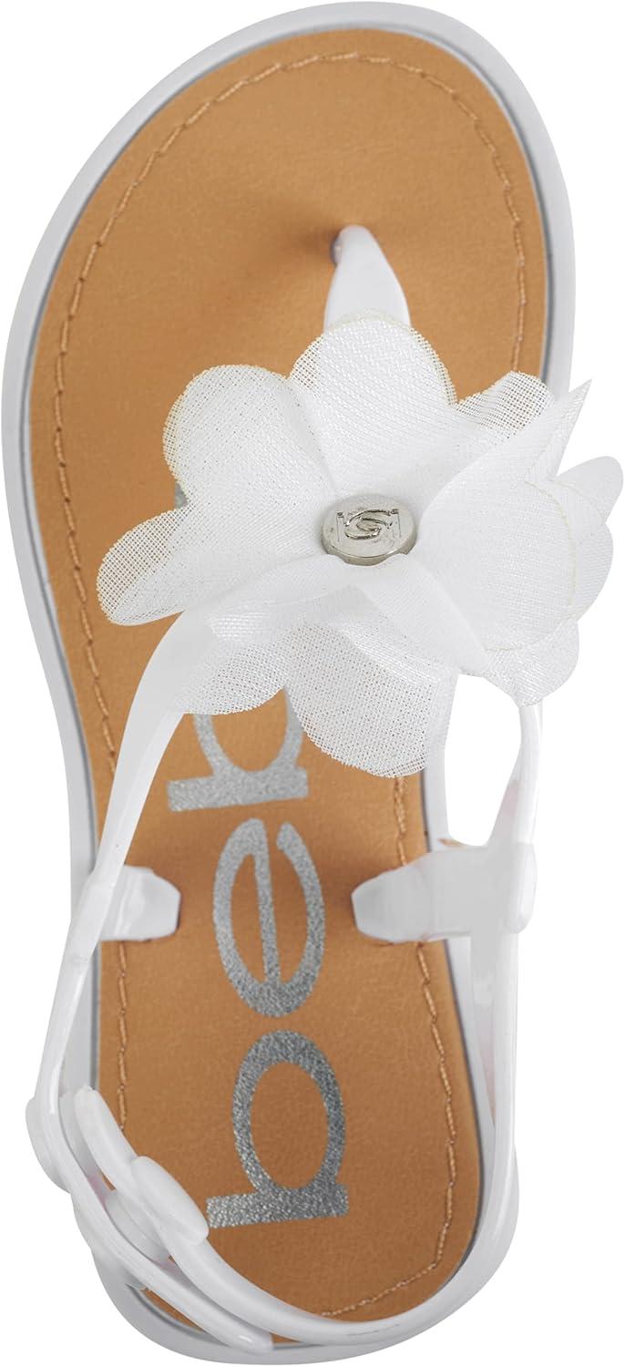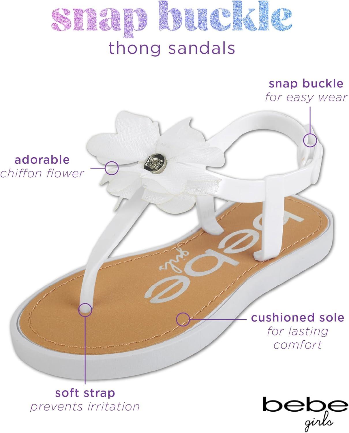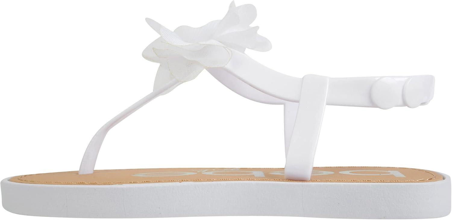 bebe Girls' Sandals - Open Toe Summer Flat Dress Shoes Snap Buckle Sandals with Chiffon Flower Design and Cushioned Sole(Ivory)