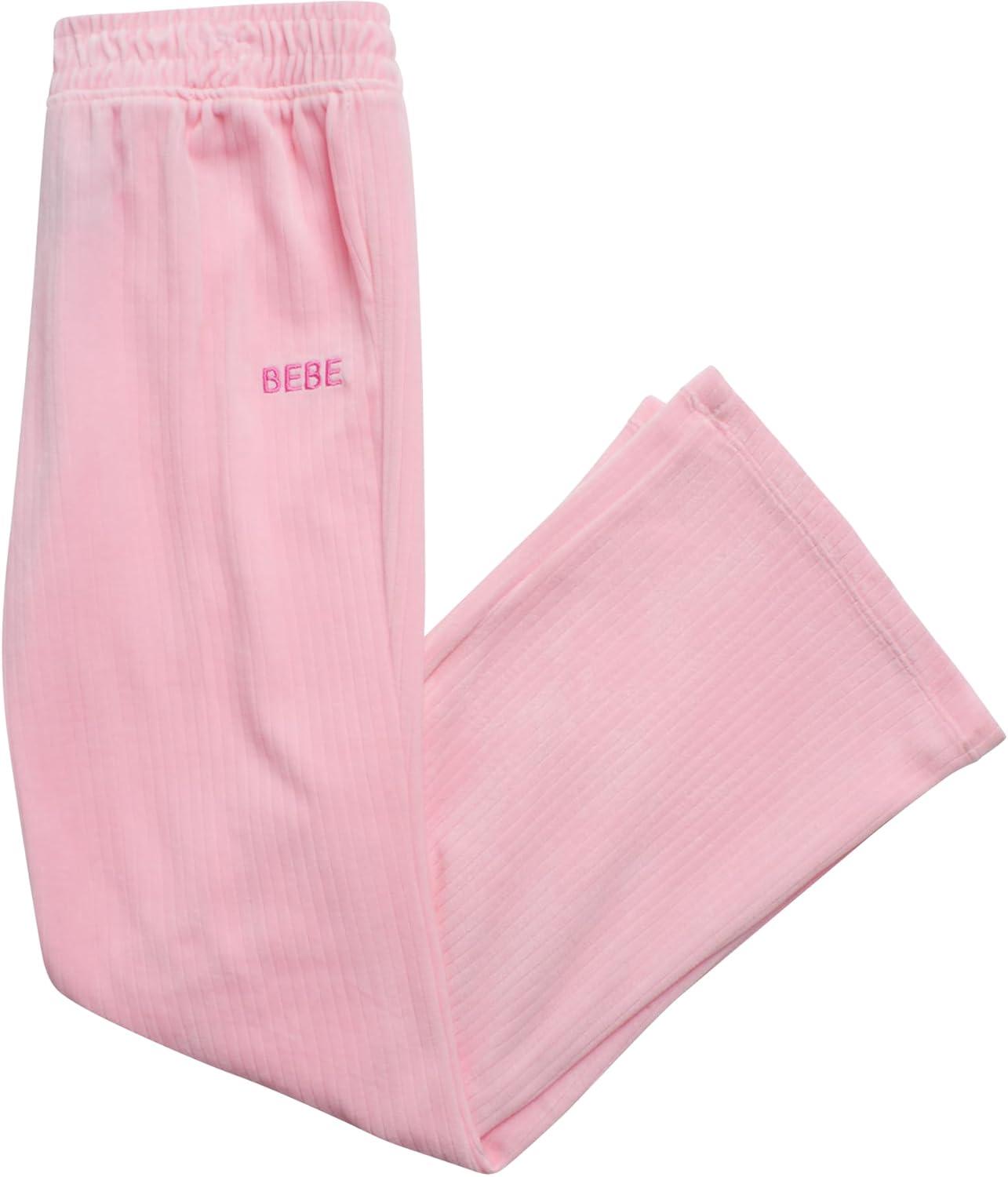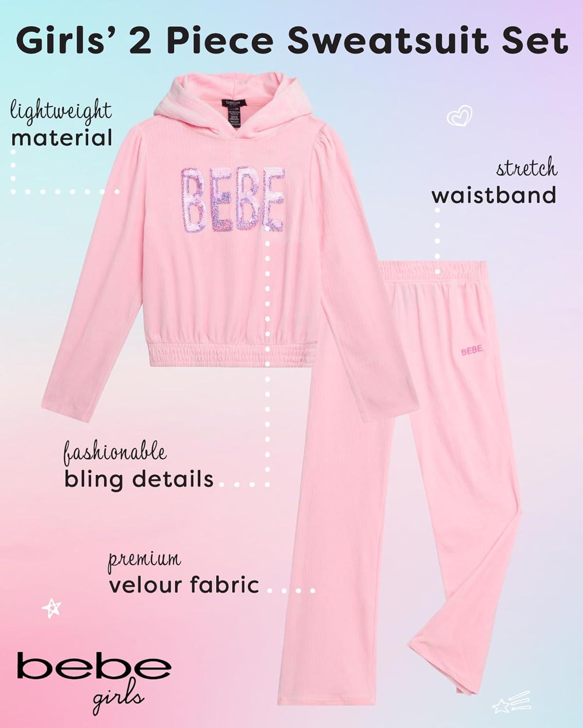 bebe Girls Sweatpants Set – 2 Piece Velour Athletic Hoodie Sweatshirt and Wide Leg Kids Sweatpants Activewear Set(Rose Shadow)