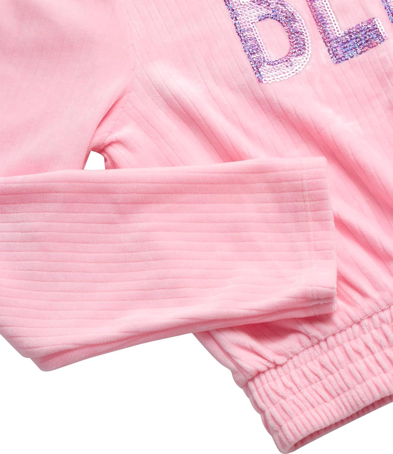 imagebebe Girls Sweatpants Set  2 Piece Velour Athletic Hoodie Sweatshirt and Wide Leg Kids Sweatpants Activewear SetRose Shadow