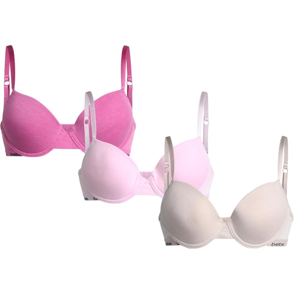 bebe Girls Training Bra – 3 Pack Soft Molded Bra with Adjustable Straps – Training Bra for Girls (A Cup/B Cup)(Pink Almond)