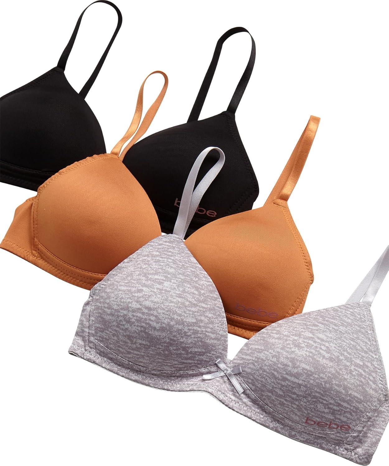 bebe Girls’ Training Bra – 3 Pack Wire Free Soft Microfiber Molded Bra with Adjustable Straps (A Cup/B Cup)(Tawny)