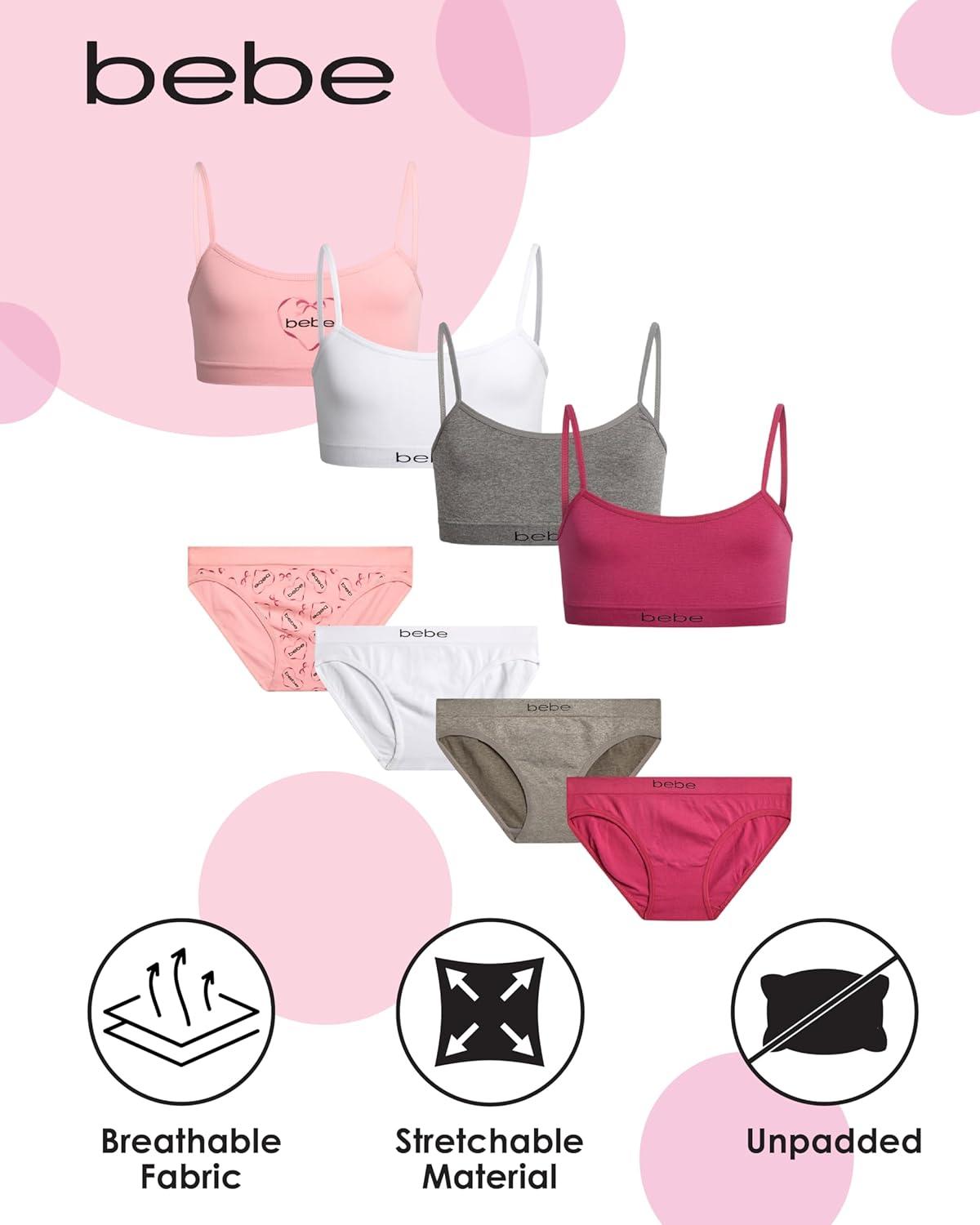 bebe Girls’ Underwear Set – Seamless Cami Training Bra and Matching Panties (8 Piece)(Candy Pink)