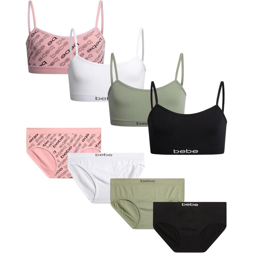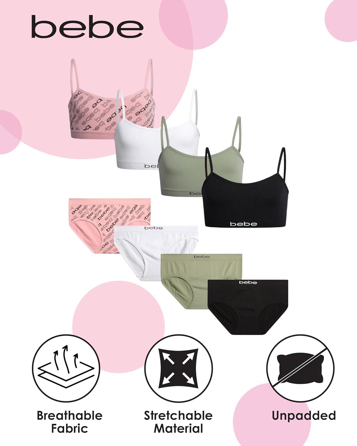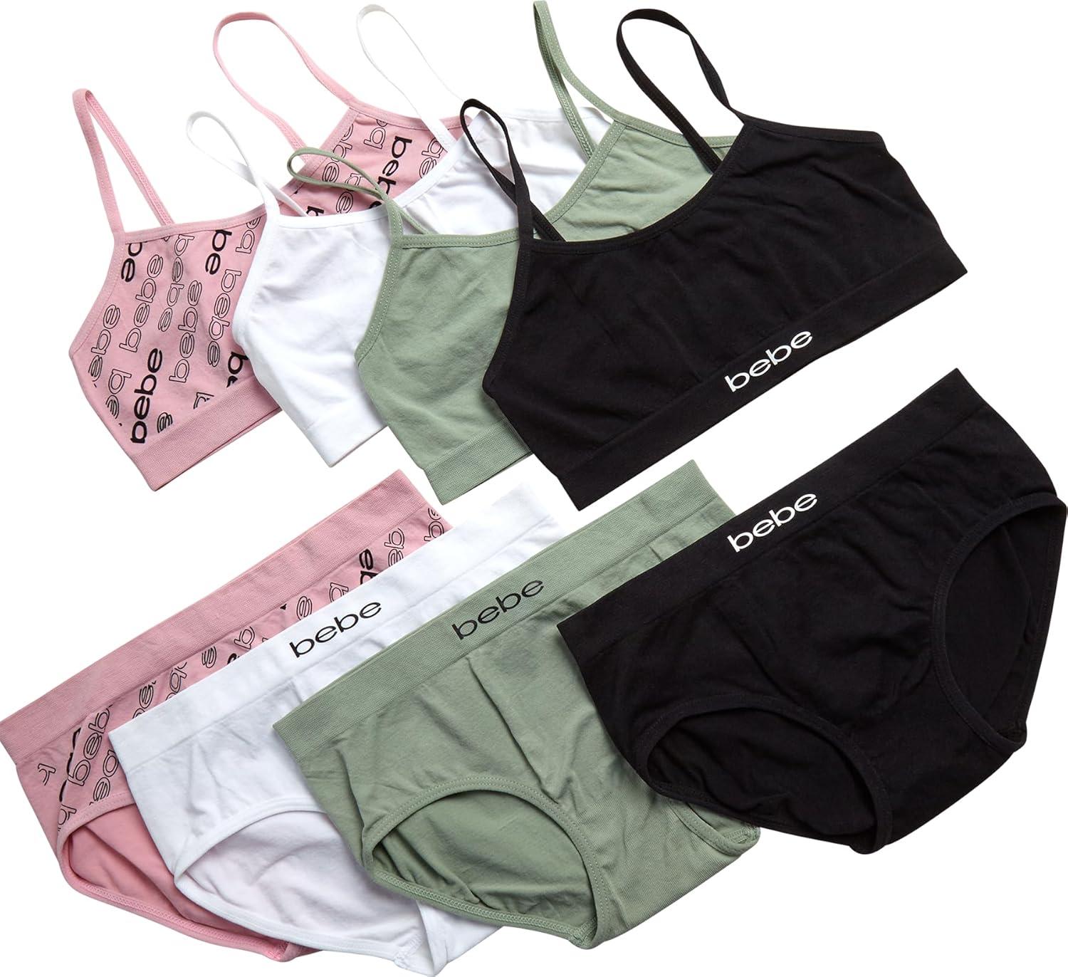 bebe Girls’ Underwear Set – Seamless Cami Training Bra and Matching Panties (8 Piece)(Candy Pink)
